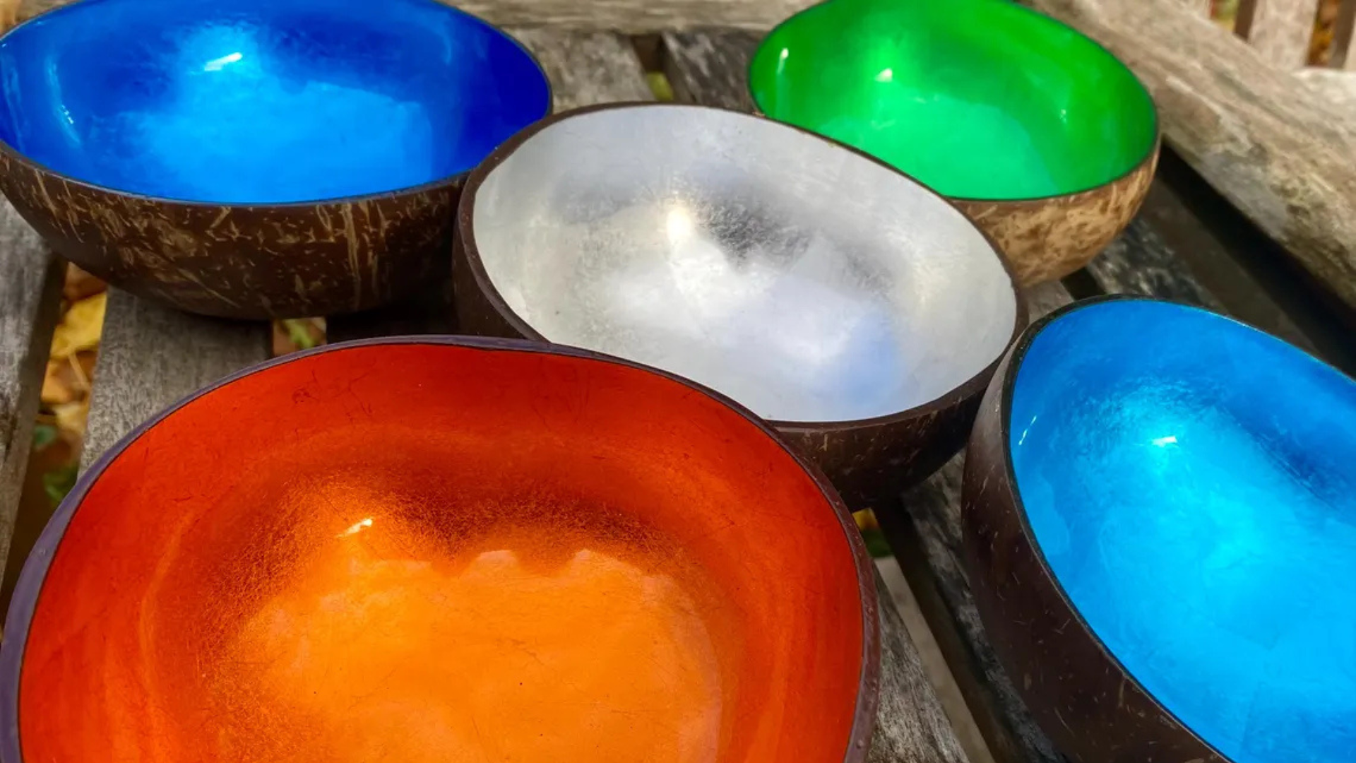 Cream Coconut Bowl with Mother of Pearl Inlay Light Circle