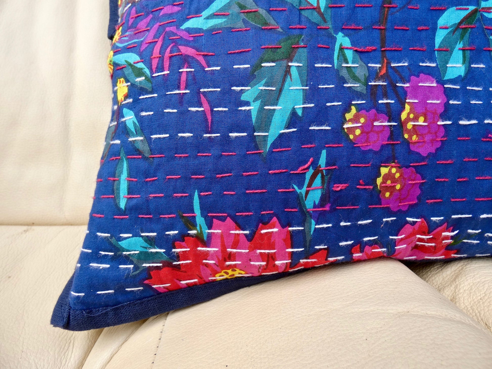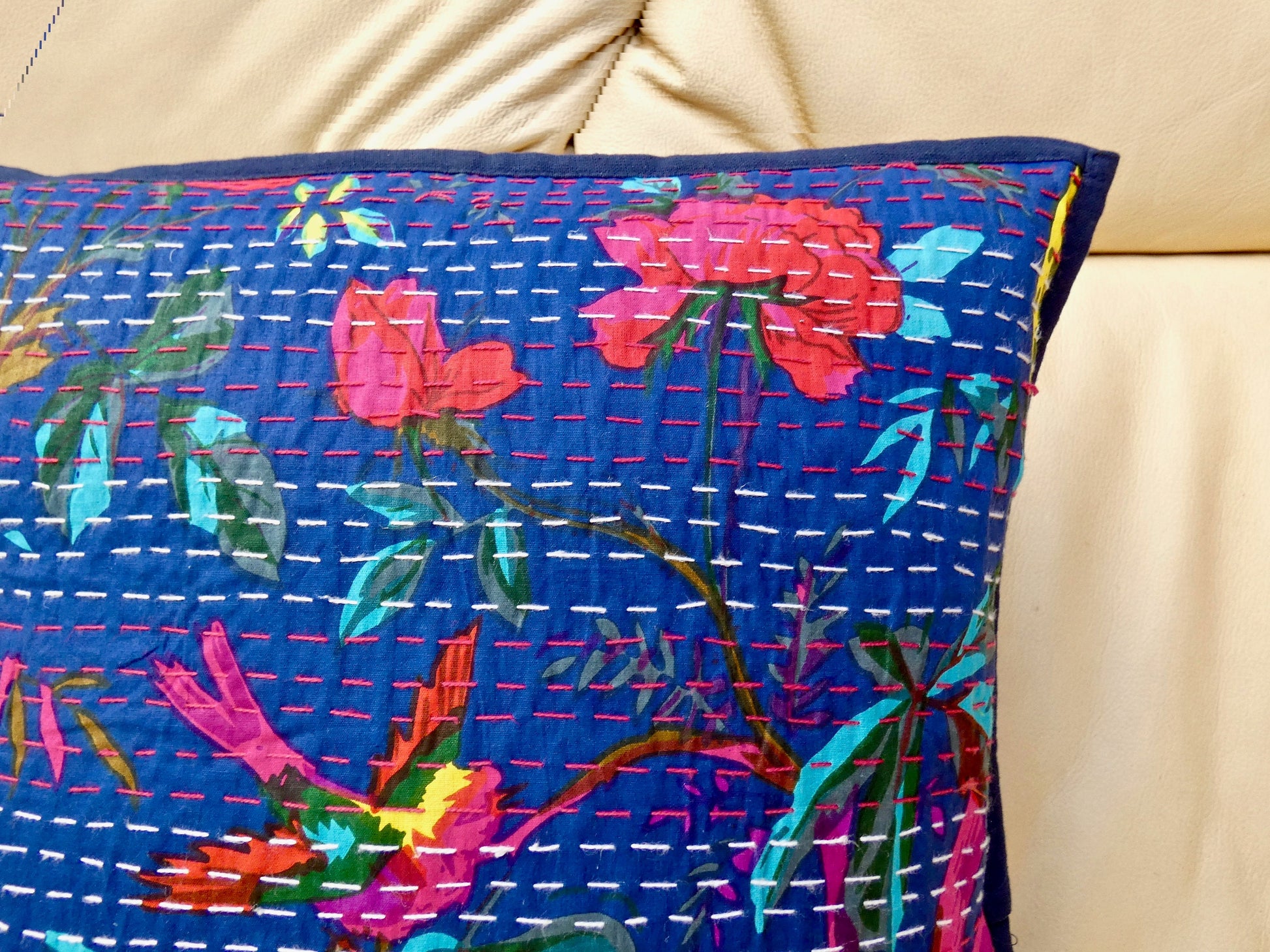 Bright, beautiful, and steeped in tradition, this hand-stitched Kantha cushion cover brings colour, texture, and heritage into your home.