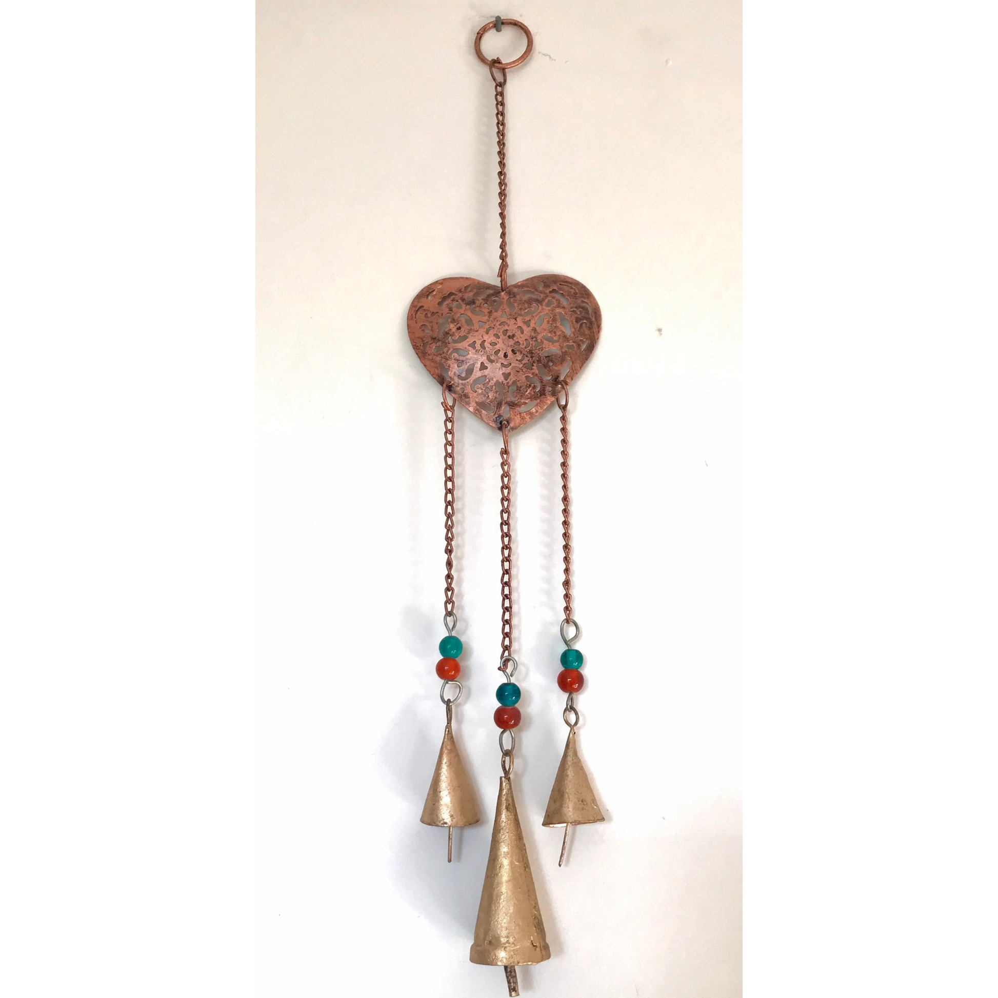 Add a touch of charm and gentle sound to your home or garden with this handmade heart-shaped wind chime. Crafted from durable metal with a brass or copper finish, this piece combines boho style with soothing tinkling tones.