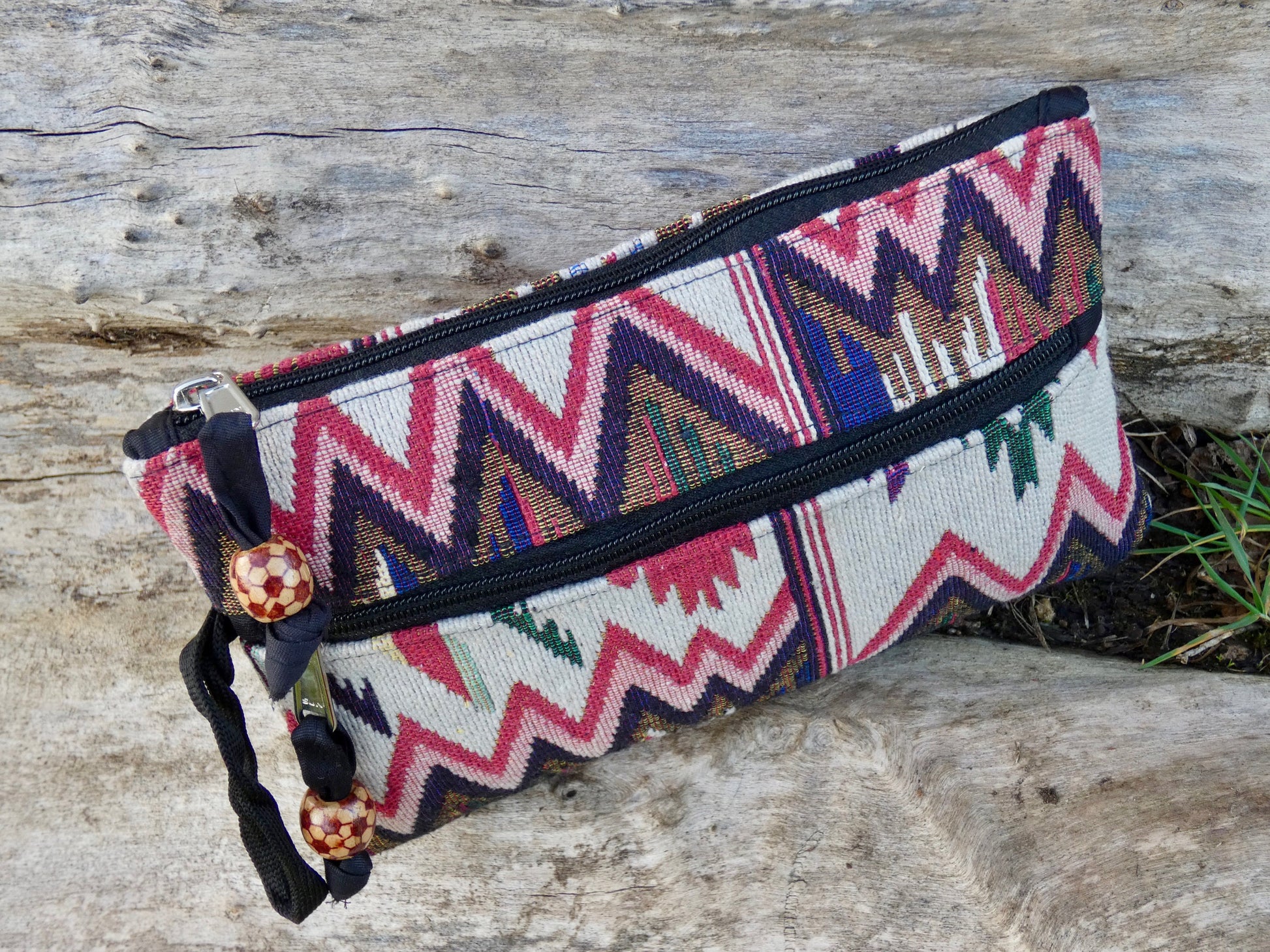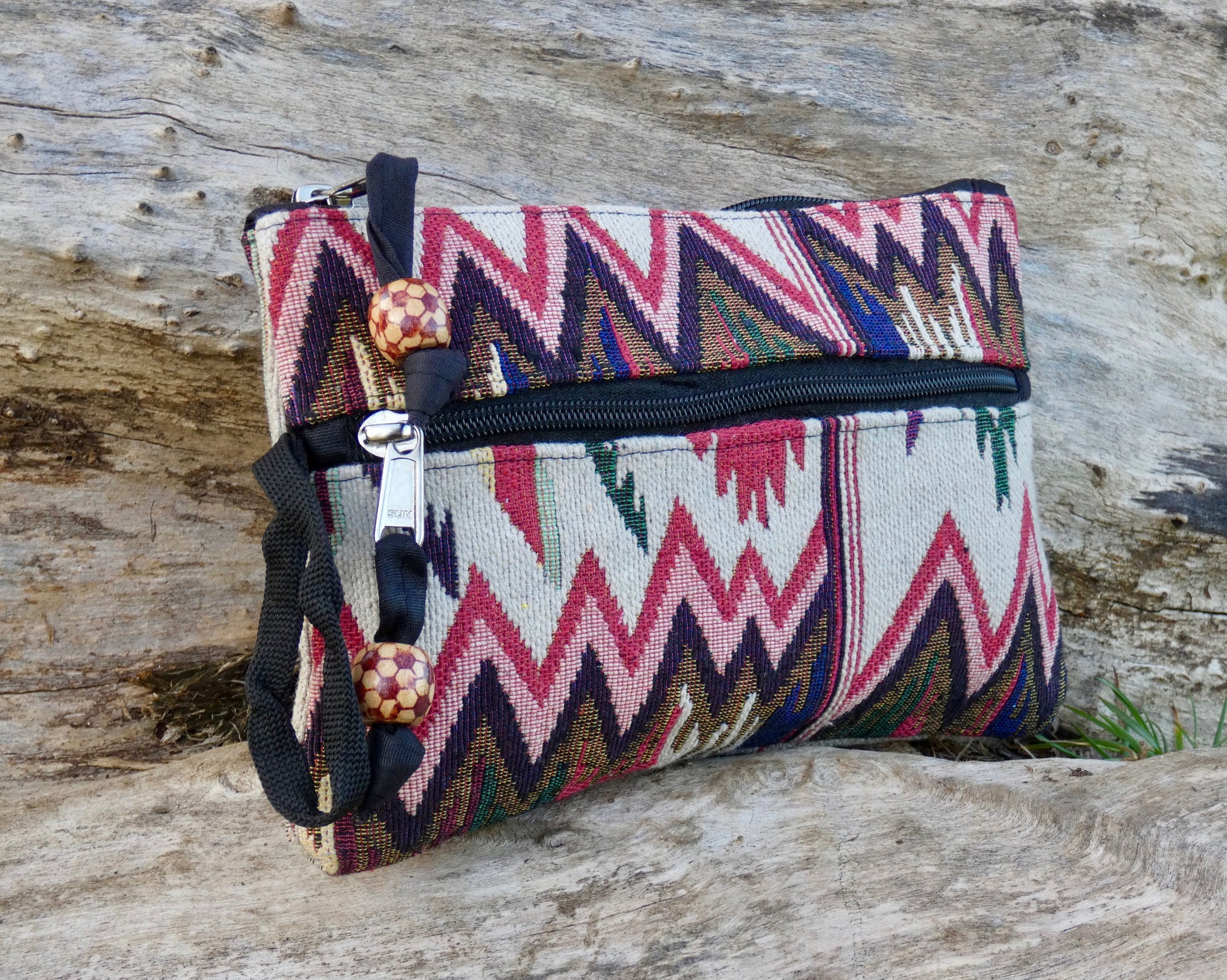 Crafted from leftover Jacquard cotton, this purse is all about turning beautiful remnants into something practical, joyful, and built to last. Every scrap has been lovingly used, resulting in a stylish tribal inspired zippered bag with a story — one that’s as sustainable as it is versatile.