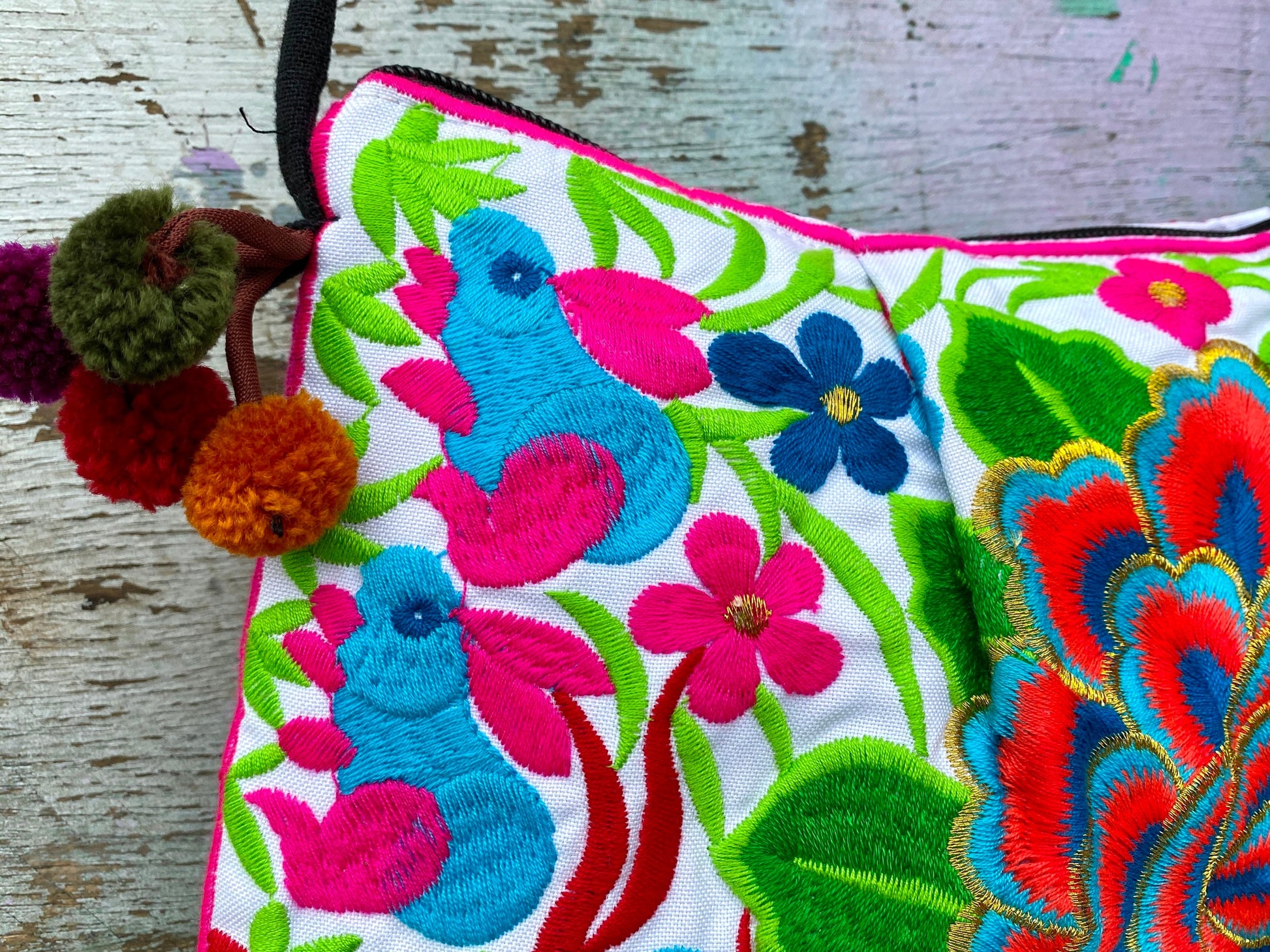 Bursting with colour and character, this handcrafted Thai boho bag is a joyful celebration of traditional embroidery and artisan craftsmanship. Each piece is carefully made, featuring vivid threads that stand out beautifully against a crisp white background.