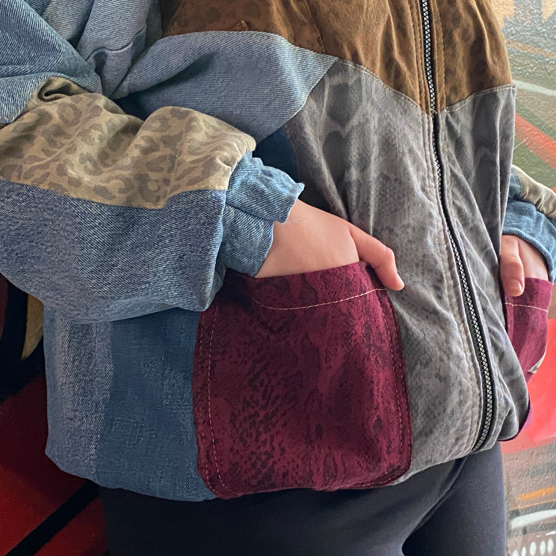 Featuring front patch pockets and a sturdy nylon zip, each piece has its own unique layout — even incorporating the original jean pocket details as part of our creative pattern cutting. To top it off, every jacket is fully lined with a pure cotton men’s shirt, making it not only stylish but kind to the planet. Each one is completely unique, just the way we like it. (Just look at that animal print !)